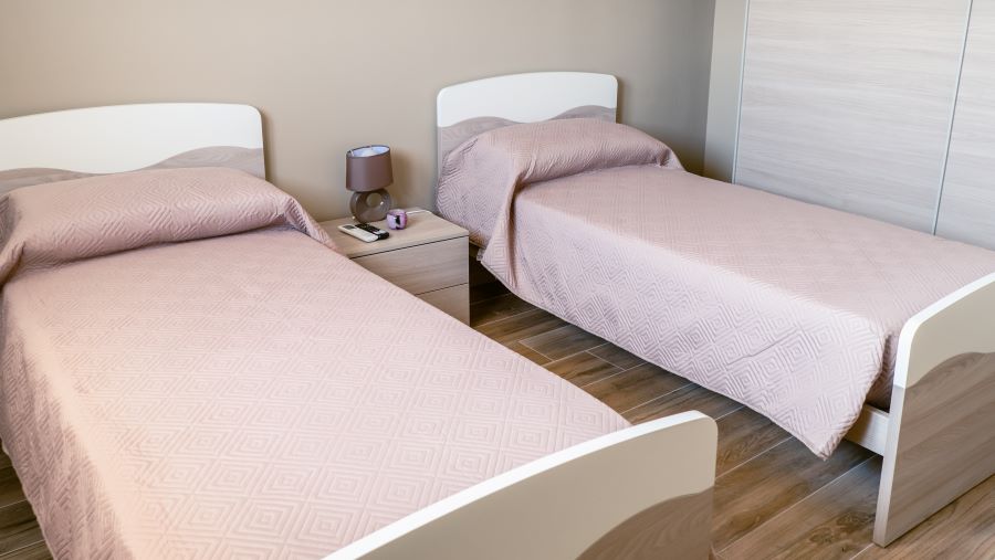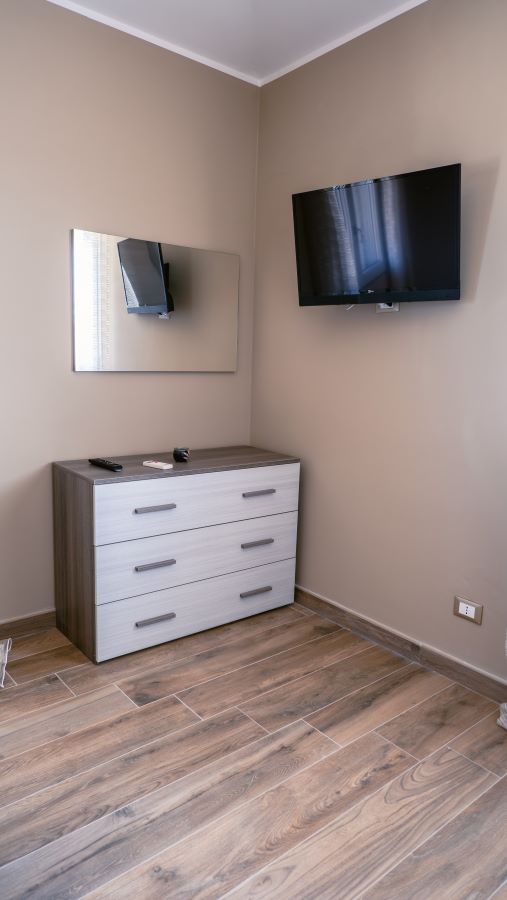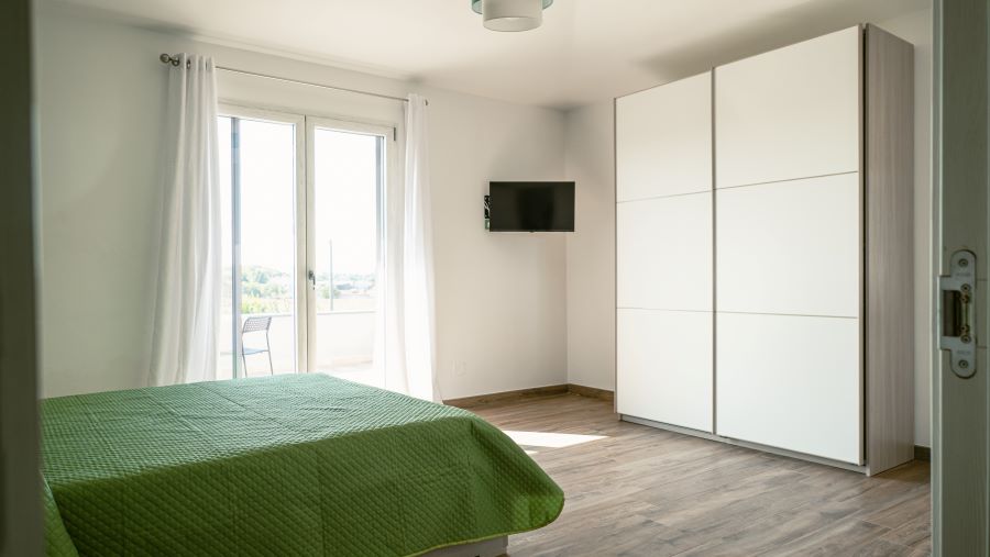 Ampia camera con due posti letto completa di armadio, comodini, gran armadio, televisione, condizionatore termoconvettore, balcone luminosissimo e bagno en suite. Nel bagno troverai disponibili set da bagno completo, doccia con tutti i comfort, incluso un asciugacapelli e prese shuko.